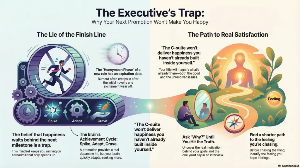 The hit from the promotion is real. The corner office really does feel great—at first. But the brain adapts. What felt like arrival becomes the new normal. And suddenly you’re scanning the horizon for the next thing that might bring back that feeling.